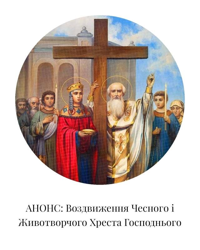 26 ВЕРЕСНЯ, В НЕДІЛЮ – увечері о 17:00 годині буде служитися святкове вечірнє богослужіння з чином благословення хлібів, вина, олії та з чином виносу Хреста Господнього;