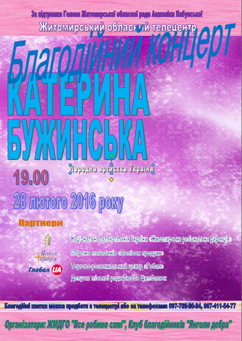 Запрошуємо вас на благодійниу концерт Катерини Бужинської!!