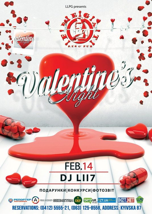 14 лютого у міжнародний день всіх закоханих тільки для Вас ми створимо незабутню романтичну атмосферу!!!