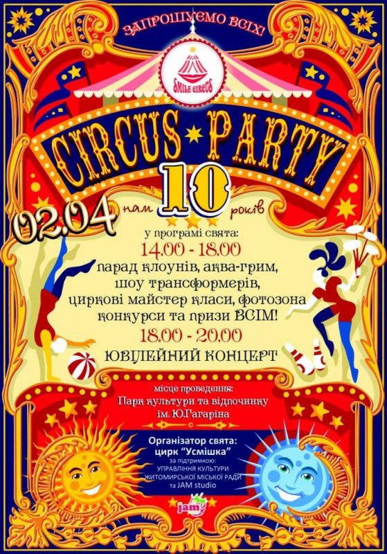 Житомир святкує День гумору та відзначає 10-річчя цирку "Усмішка". Всі запрошуються на свято.