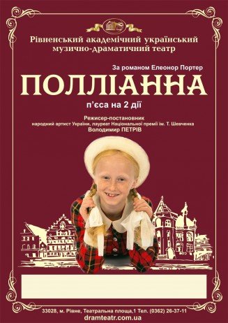 Це історія про веснянкувату, але в цілому звичайну дівчинку. Але лише на перший погляд вона така, як і усі її однолітки. Насправді ж дівчатко — невгамовна, надзвичайна сонячна, позитивна сила, яка змінить життя похмурого, сірого містечка. Оповідь про Полліанну завжди хвилювала серця людей — за мотивами цього твору знято численні фільми та телесеріали. Не одній дівчинці пощастило відчути себе у ролі натхненниці і фактично рятівниці містечкового соціуму. «Це вистава про те, як дитина здатна змінити світогляд дорослого, як дитина здатна вплинути на дорослих, аби вони по іншому подивились на світ.», — Володимир Петрів.