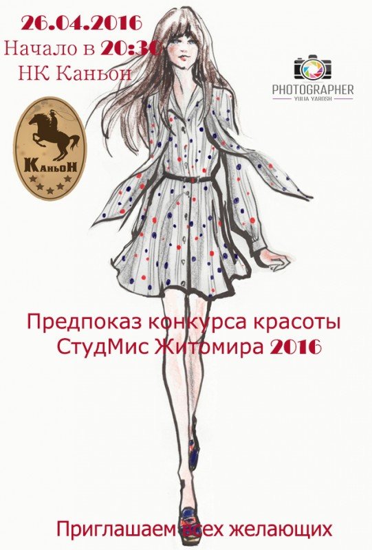 Финал "СтудМисс Житомира 2016" уже совсем близко. Но, прежде чем увидеть наших красавиц на большой сцене, приглашаем всех желающих посетить пред-показ участниц "СтудМисс Житомира 2016".