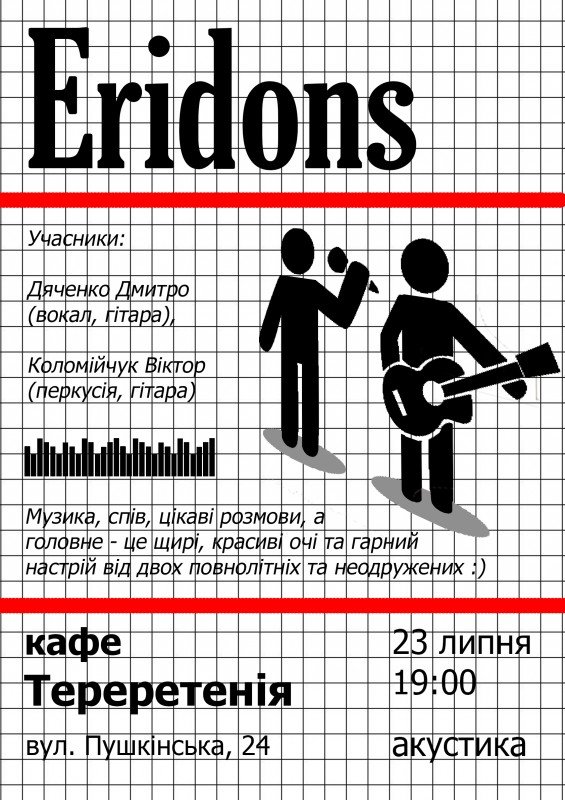 Кав'ярня продовжує цикл творчих вихідний і в цю суботу завітає гурт "Eridons".