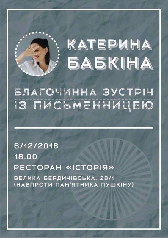 Зустріч з небайдужими житомирянами для відвертої розмови на складні теми. Адже часто у нас політизують це поняття, а Катерина пояснить, як це робить крізь призму підтримки української книги, чому важливо усім віддавати часточку себе тим, хто цього потребує. Зокрема, цього разу мова про онкохворих дітей.