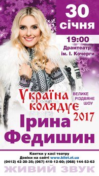 Надвечір’я нового року з півачкою подарує щем в душі і радість в серці. Коли мороз спирає подих, а сутінки огортають землю, ватага колядників гамірно висипається на вулицю. “Пустіть Коляду до хати!” — чується під вікнами, а господарі гостинно: ”Заходьте!” І колядує вечорами вся Україна, а з нею співуча галичанка. Різдвяна феєрія 2016 року, яка не забувається. Давайте хоч краєм ока зазирнемо на її концерт.