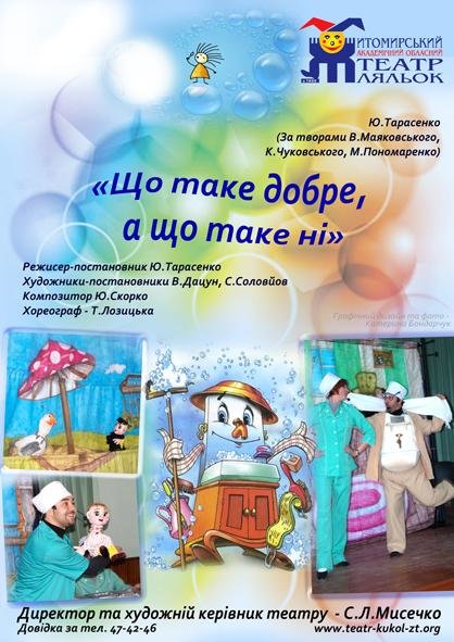 Веселий і водночас суворий Умивальник Мойдодир розкаже маленьким глядачам, що необхідно жити в чистоті, підтримувати порядок, виконувати фізичні вправи, бути уважними, сміливими й прислухатися до порад старших.