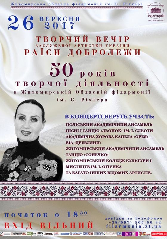 Творчий вечір Заслуженої артистки України Раїси Добролежи
