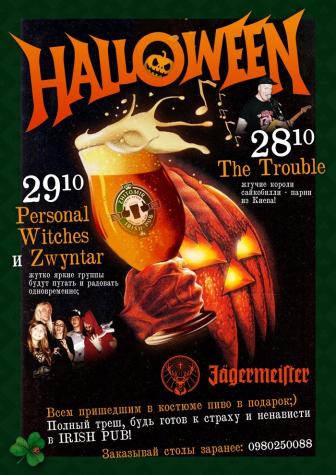 Мы уже приготовили для Вас жутко веселую вечеринку в честь зловещего праздника - Halloween! Приглашаем провести эти огненные выходные именно в Ирландском пабе ведь Вас поить и веселить будут две угарные группы: