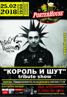 Більше 2-х годин безсмертних хітів культового гурту у виконанні трибьют проекту пам"яті М.Ю.Горшеньова - "Королівство Шута".