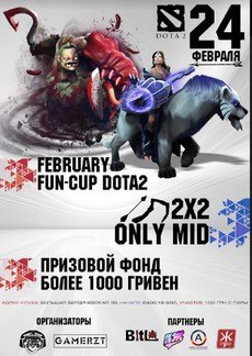 У нас отличные новости: мы начинаем проводить турниры в 2к18, первым стартует фан-турнир по DOTA2 2х2 (Pudge и Mirana VS Pudge и Mirana), который мы проведем с нашими партнерами Геймер Житомира.
