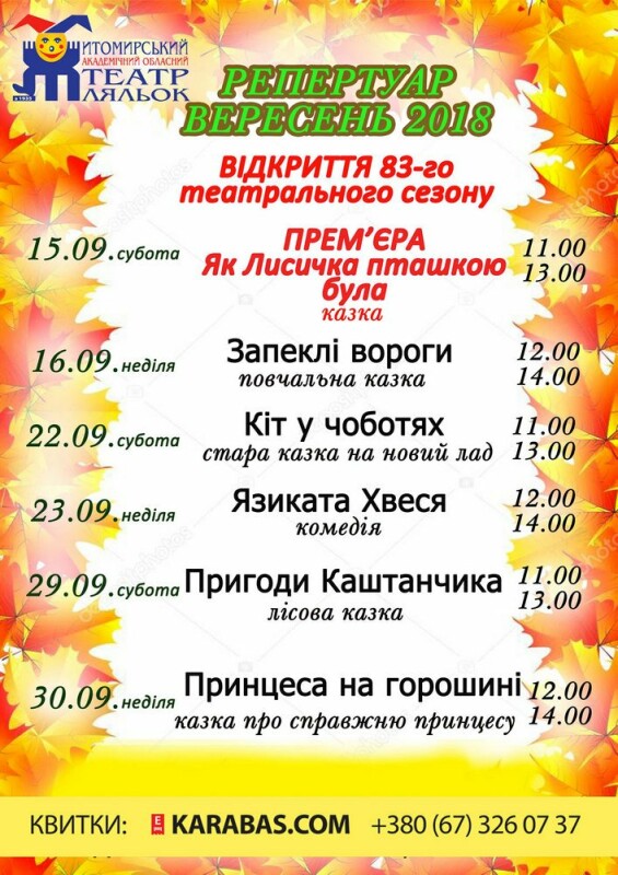 Для Вас мы ежедневно собираем самые невероятные события города, которые могут вам подарить яркие эмоции и незабываемые впечатления. Афиша Житомира на 0412.ua — все то, что стоит увидеть, попробовать и почувствовать. Самая полная информация о культурной жизни города! Все события в ночных клубах, кинотеатрах, концертных залах, ресторанах и др. — все это и многое другое, вы найдете в Афише сайта города Житомира 0412.ua!