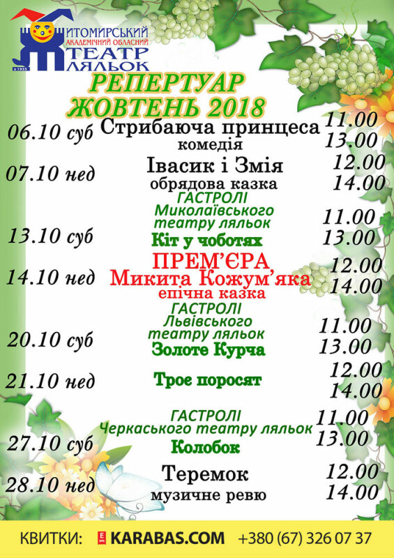Для Вас мы ежедневно собираем самые невероятные события города, которые могут вам подарить яркие эмоции и незабываемые впечатления. Афиша Житомира на 0412.ua — все то, что стоит увидеть, попробовать и почувствовать. Самая полная информация о культурной жизни города! Все события в ночных клубах, кинотеатрах, концертных залах, ресторанах и др. — все это и многое другое, вы найдете в Афише сайта города Житомира 0412.ua!
