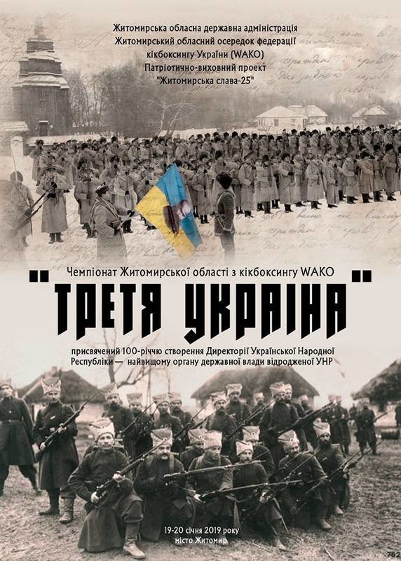 Зовсім скоро відбудеться чемпіонат Житомирської області з кікбоксингу WAKO «ТРЕТЯ УКРАЇНА», присвячений 100-річчю створення Директо́рії Української Народної Республіки — найвищому органу державної влади відродженої УНР.