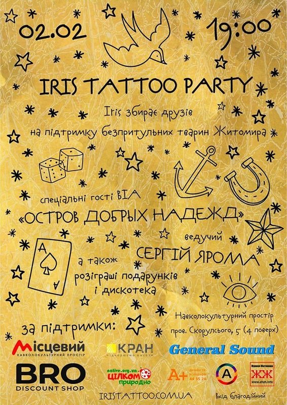 Відома тату майстер Iris запрошує своїх клієнтів та друзів на вечірку де виступить гурт "Остров Добрых Надежд".