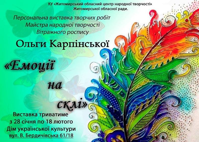 Персональна виставка творчих робіт майстра народної творчості вітражного розпису Ольги Карпінської.