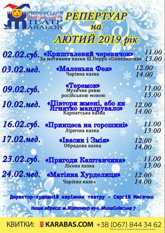 Для Вас мы ежедневно собираем самые невероятные события города, которые могут вам подарить яркие эмоции и незабываемые впечатления. Афиша Житомира на 0412.ua — все то, что стоит увидеть, попробовать и почувствовать. Самая полная информация о культурной жизни города! Все события в ночных клубах, кинотеатрах, концертных залах, ресторанах и др. — все это и многое другое, вы найдете в Афише сайта города Житомира 0412.ua!