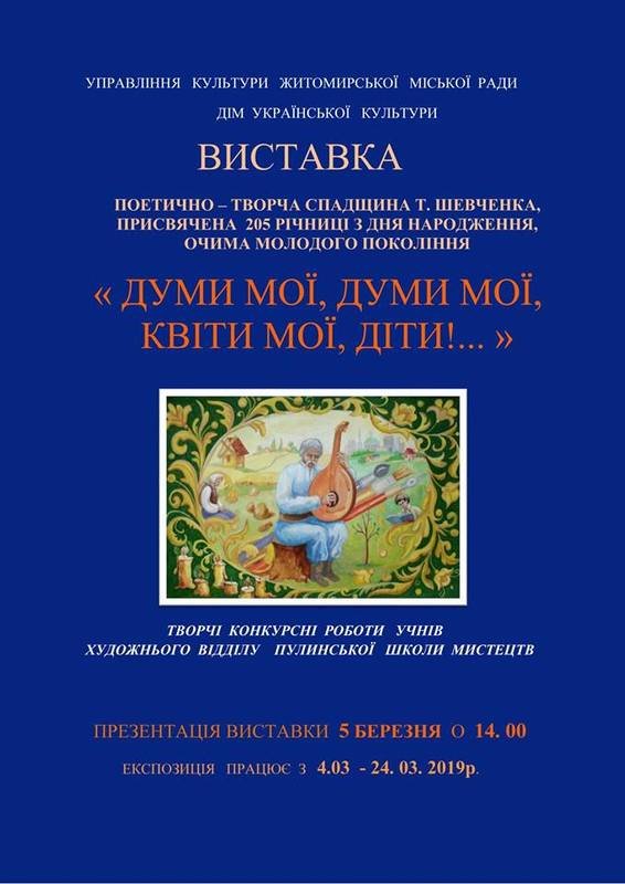 Виставка творчих робіт учнів художнього відділу Пулинської школи мистецтв.