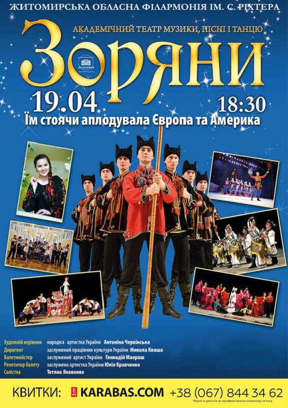 Академічний театр музики, пісні і танцю «Зоряни» був створений понад тридцять років тому, в далекому 1984 році. Налічує в своєму складі 35 осіб – це професійні і обдаровані артисти балету та музиканти, випускники консерваторій і вищих музичних закладів України.