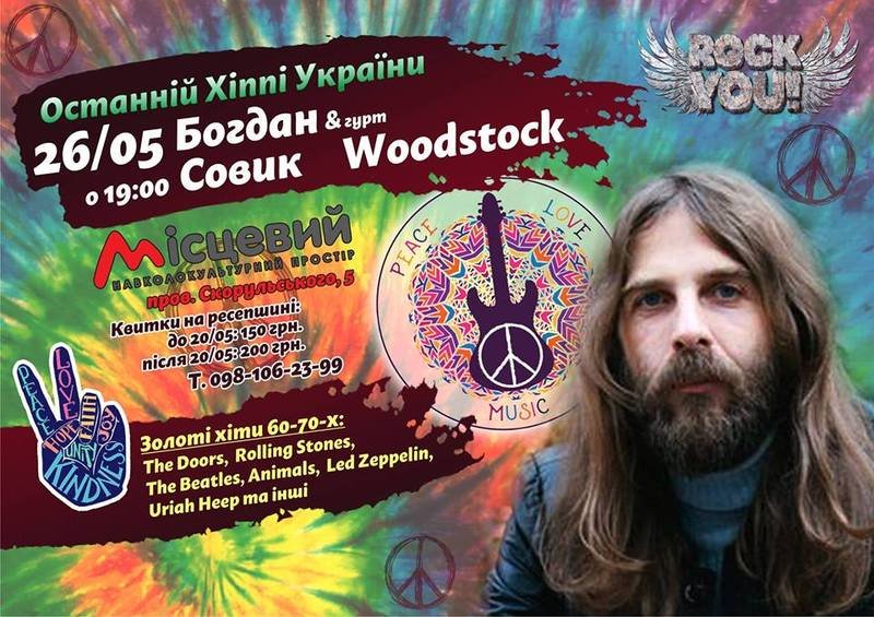 "Останній Хіппі України" Богдан Совик - поза всяким сумнівом музична особистість.Він виріс на рок-музиці 60-70-х років і це - його стиль життя.Він виконує найкраще з раннього класичного року: хіти Beatles і Rolling Stones, Doors і Animals, Led Zeppelin і Uriah Heep. І робить він це не «за гроші» (тому, що мода на рок-класику), а від чистого серця (тому, що це і є музика його душі)!