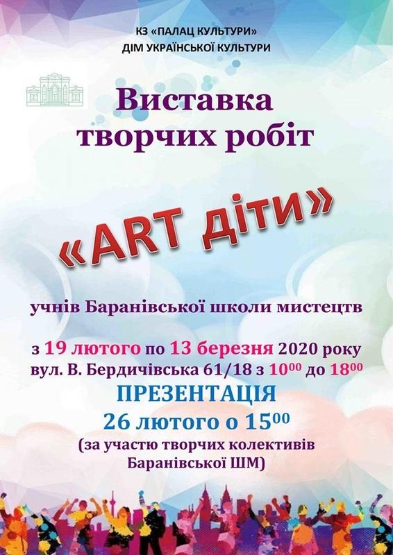 З 19.02 по 13.03 в Домі української культури буде проходити виставка творчих робіт учнів Баранівської школи мистецтв "ART діти"