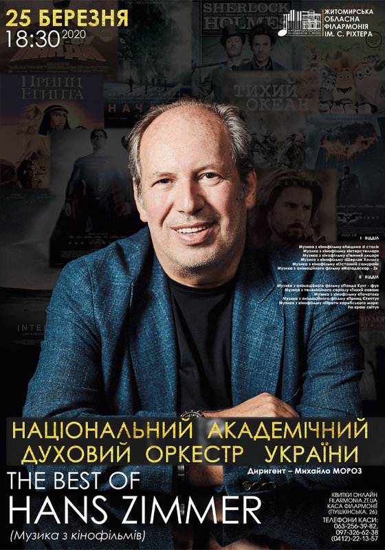 Музика з кінофільму «Людина зі сталі»Музика з кінофільму «Інтерстеллар»Музика з кінофільму «Темний лицар»Музика з кінофільму «Шерлок Холмс»Музика з кінофільму «Останній самурай»Музика з анімаційного фільму «Магадаскар — 2»
