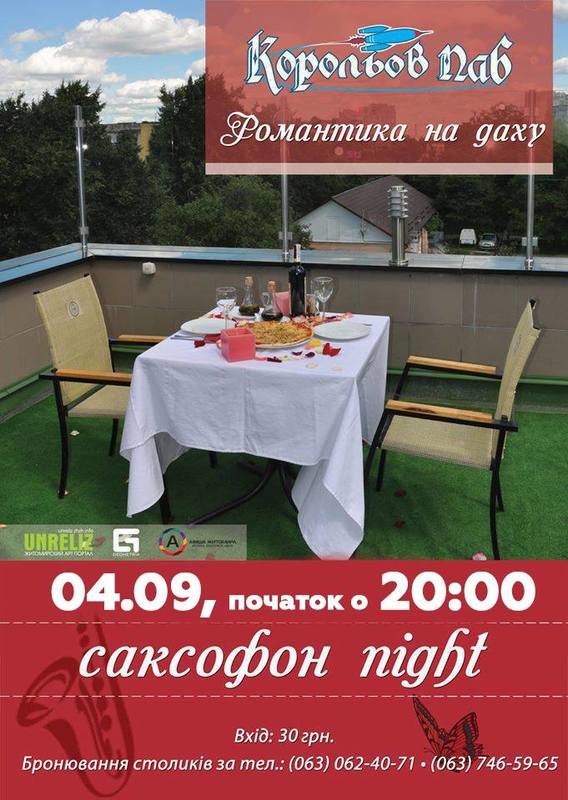 Саксофон найт - гарна можливість провести п'ятницю з другою половинкою під мелодії саксофона на даху.