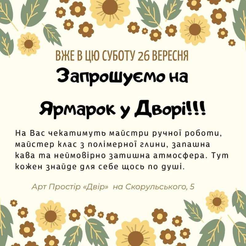 Всіх гостей запрошуємо відвідати наш затишний ярмарок майстрів вже в цю суботу 26-го вересня. На каву, смачний чай і настрій!