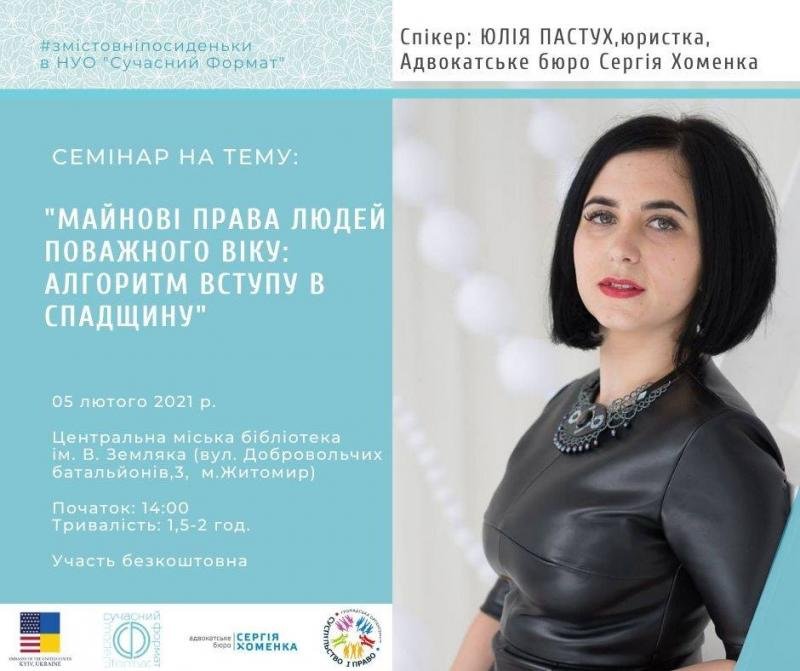 Запрошуємо взяти участь у семінарі «Майнові права людей поважного віку: алгоритм вступу в спадщину».