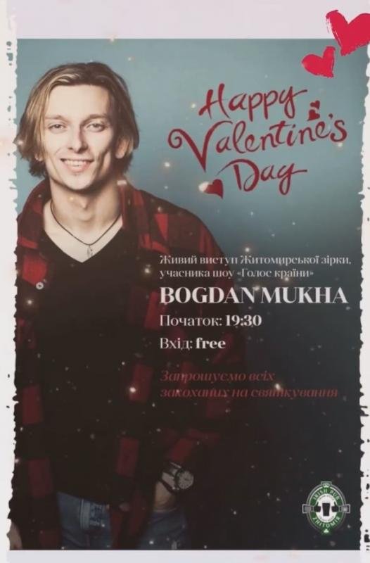 По-перше: вже у цю суботу, 13/02 ми запросили зірку нашого міста, учасника шоу «Голос країни» та просто нашого гарного друга Bogdan Mukha, який запалить ще більше ваші серця у цей вечір