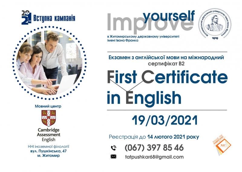 Екзамен з англійської мови на міжнародний сертифікат B2 (First Certificate in English (FCE))