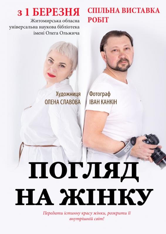 «Погляд на жінку» - так називається спільна виставка робіт художниці Олени Славової та фотографа Івана Канкіна, яка діє в бібліотеці з 1 березня 2021 року.