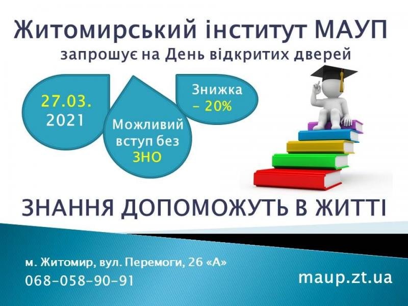 27 березня 2021 року запрошуємо до Житомирського Інституту "Міжрегіональна Академія управління персоналом" на день відкритих дверей.