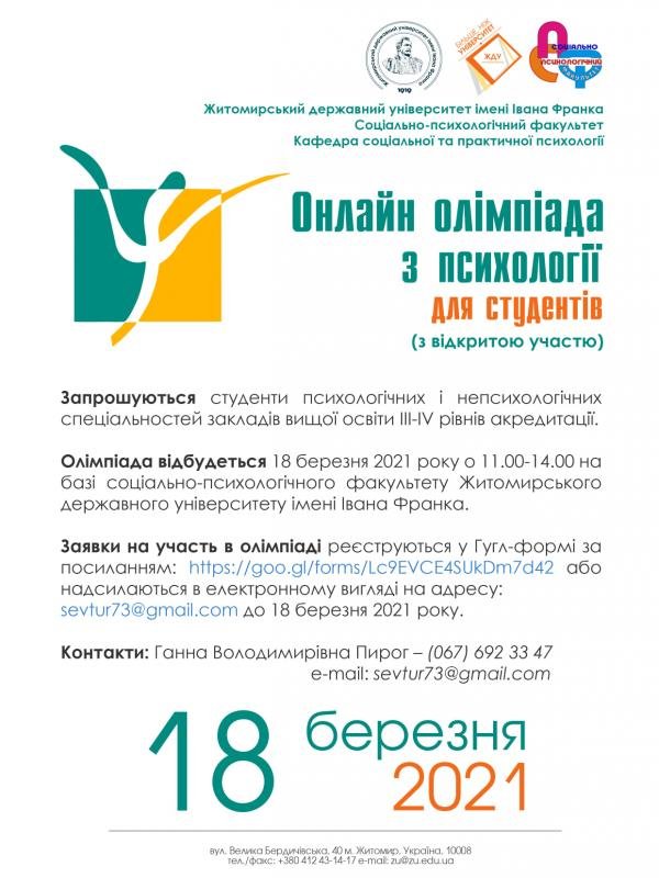 Заявки на участь в олімпіаді заповнюються до 16 березня 2021 року у Гугл-формі за посиланням https://bit.ly/3qwHJdM