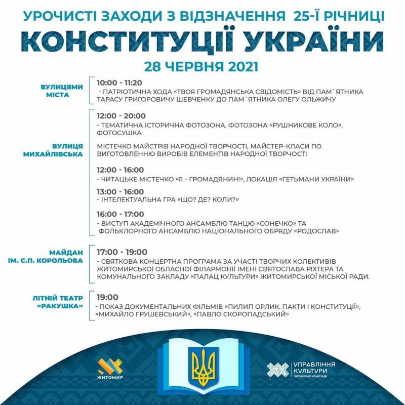 Програма заходів у рамках відзначення 25-ї річниці Конституції України в місті Житомир.