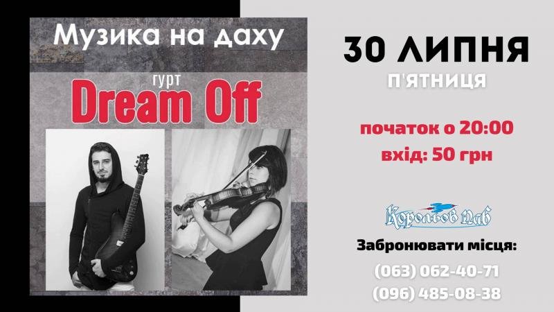 Гурт "Dream Off" - дивовижне поєднання скрипки та гітари, через яке Ви з легкістю впізнаєте відомі хіти та розчинитесь у звучанні різноманітних сучасних композицій!