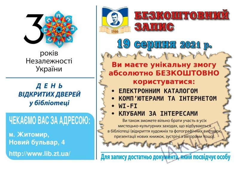 України запрошуємо вас 19 серпня на день відкритих дверей у нашій бібліотеці.