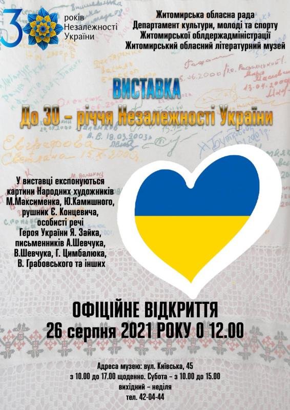 Запрошуємо на відкриття виставки до 30-ї річниці Незалежності України.