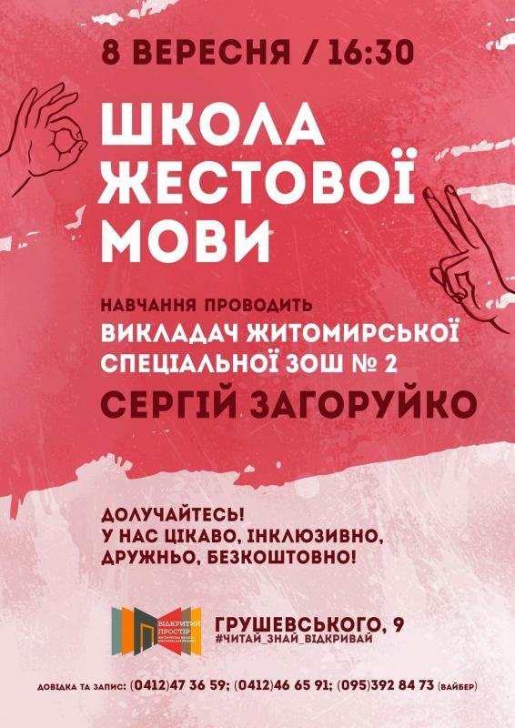 БЕЗКОШТОВНІ ЗАНЯТТЯ Школи жестової мови відбуватимуться в читальній залі обласної бібліотеки для юнацтва за попереднім записом щотижня.