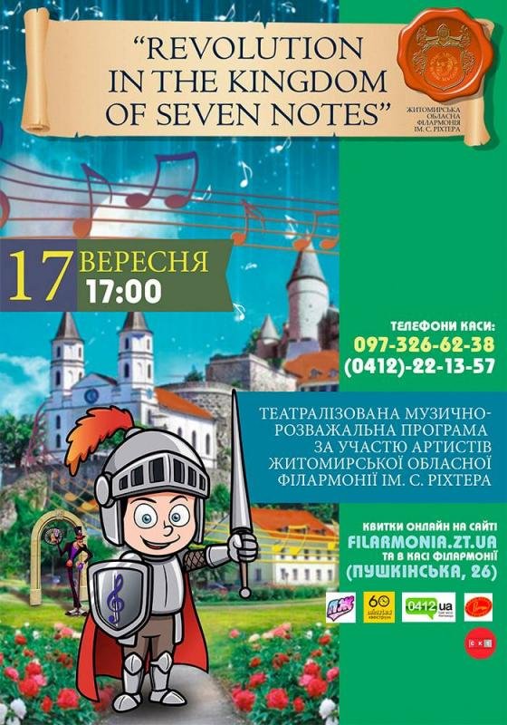 17 вересня 0 17.00 – театралізована музично – розважальна феєрія для всієї родини - «Revolution in the Kingdom of the Seven notes»
