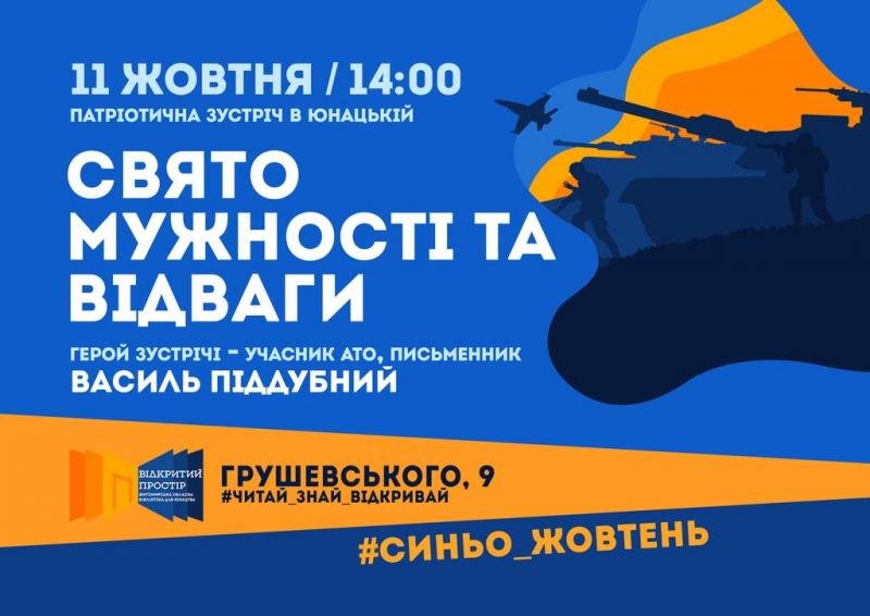 11 жовтня 2021 року в обласній бібліотеці для юнацтва відбудеться патріотична зустріч «Свято мужності та відваги».