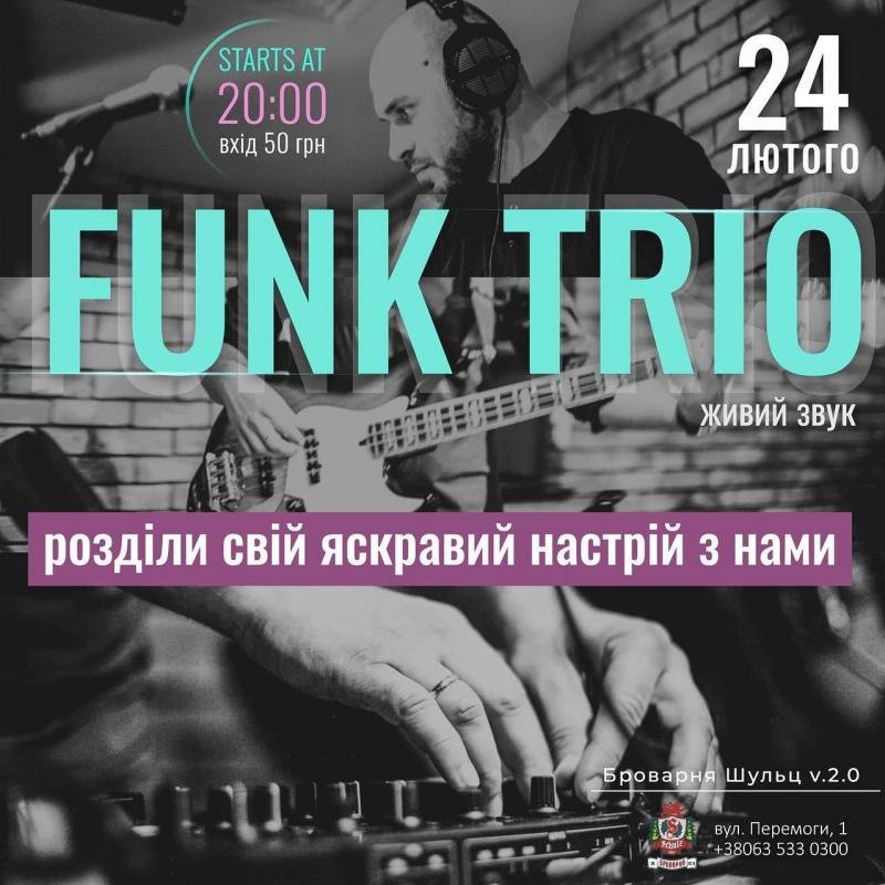 Презентуємо до уваги справжніх поціновувачів яскравого та грайливого фанку, 24 лютого о 20:00 FUNK TRIO — музичний проект, який заповнить емоціями тебе повністю