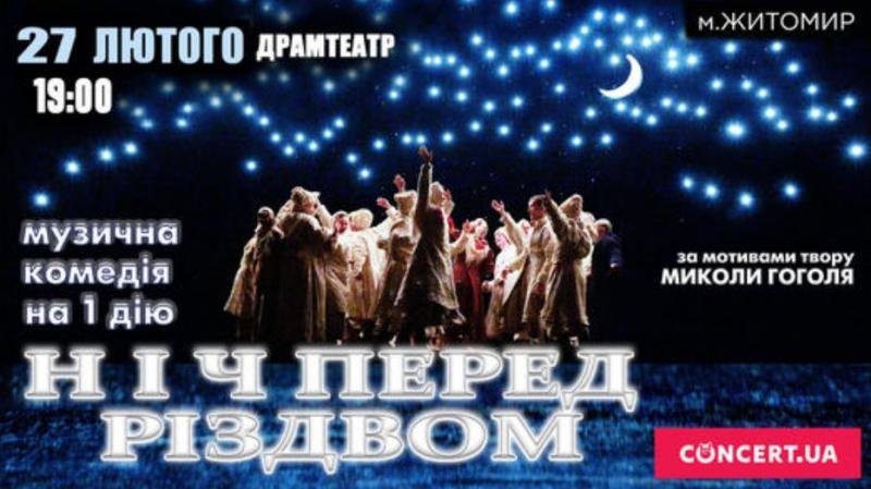 Музична комедія «Ніч перед Різдвом» – це сучасне, надзвичайно креативне прочитання режисером-постановником, заслуженим артистом України Андрієм Бакіровим однойменної повісті Миколи Гоголя. Тут химерно переплелися давні легенди й картини життя тогочасного українського села, реальне й уявне, фантастичне і комічне. Захоплюючі ритми хореографічних композицій, вражаюча енергетика сценічного дійства, колоритні образи, створені яскравим акторським ансамблем, підкорили глядачів Києва і Львова, Тернополя і Рівного, Полтави і Луцька, Житомира й Івано-Франківська, Харкова і Дніпра, Гомеля і Бреста. На Міжнародному фестивалі «Золоті оплески Буковини»-2016 у Чернівцях новаційна робота шевченківців отримала перемогу в трьох номінаціях, а на Міжнародному фестивалі українського театру «Схід – Захід» у Кракові (Польща) у 2018 році Гран-прі фестивалю.