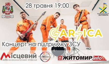 28 травня відбудеться благодійний концерт на підтримку ЗСУ відомого житомирського гурту «Gar4ica»