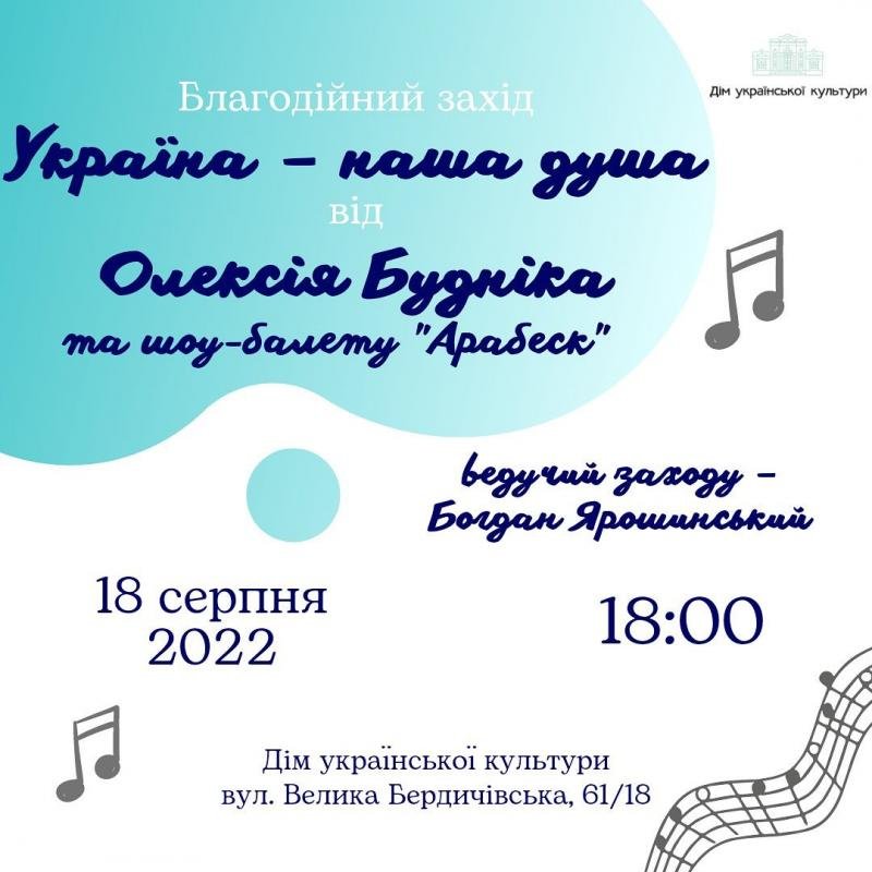 Благодійний захід «Україна – наша душа» від Олексія Будніка та шоу-балету "Арабеск".
