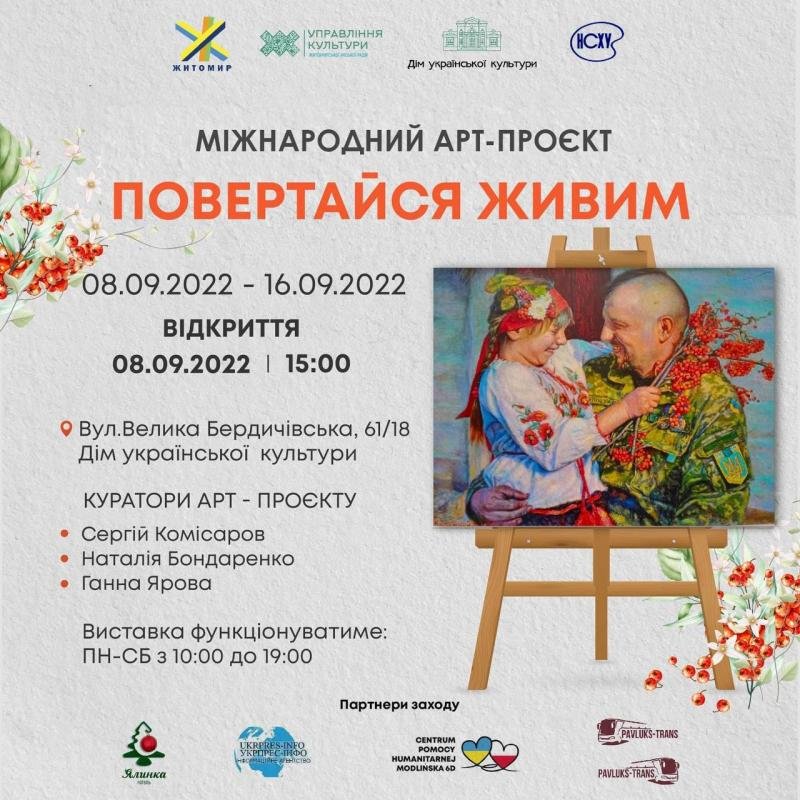 Виставка художніх картин учасників Міжнародного арт-проєкту "Повертайся живим!"
