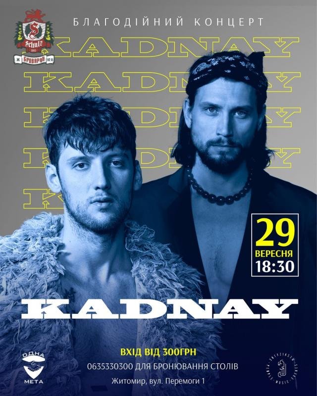 29 вересня о 18:30 відомий український електро-поп гурт KADNAY виступить у Броварні Шульц v.2.0 із благодійним концертом.
