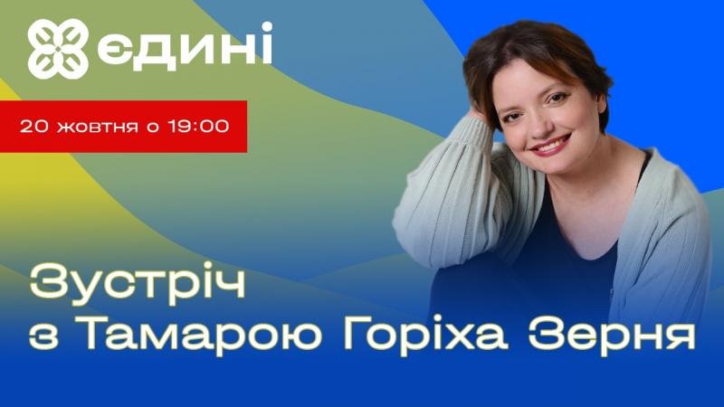 Друзі, в рамках шостого курсу проєкту «Єдині» запрошуємо вас на зустріч з Тамарою Горіха Зерня.