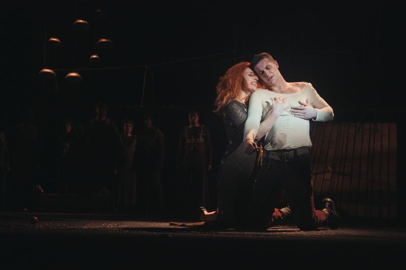 Яскраве пластичне вирішення масових сцен вистави підкреслює особливість постановки, лаконічність художнього оформлення не відволікає від головного об’єкту – любовного трикутнику, де кожен захищає і виборює своє щастя.