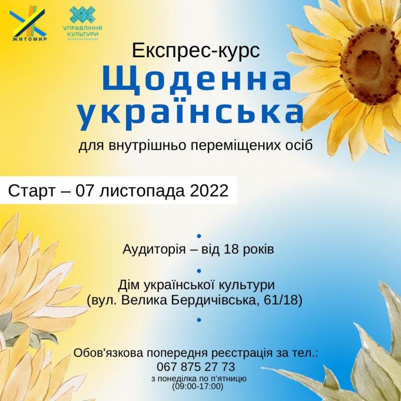 Експрес-курс складатиметься із 8 тематичних занять та проходитиме офлайн на базі Дому української культури (вул. Велика Бердичівська, 61/18)