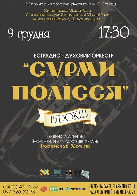 Запрошуємо усіх бажаючих відвідати знаковий виступ естрадно-духового оркестру "Сурми Полісся".